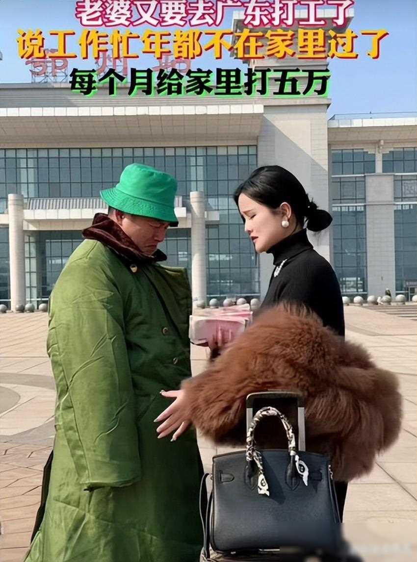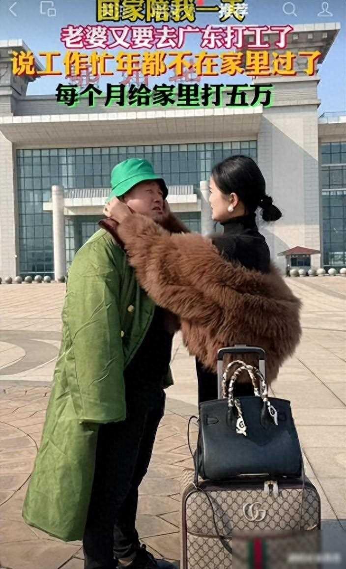女子过完年就外出打工挣钱,与老公告别时,给老公戴的帽子成亮点