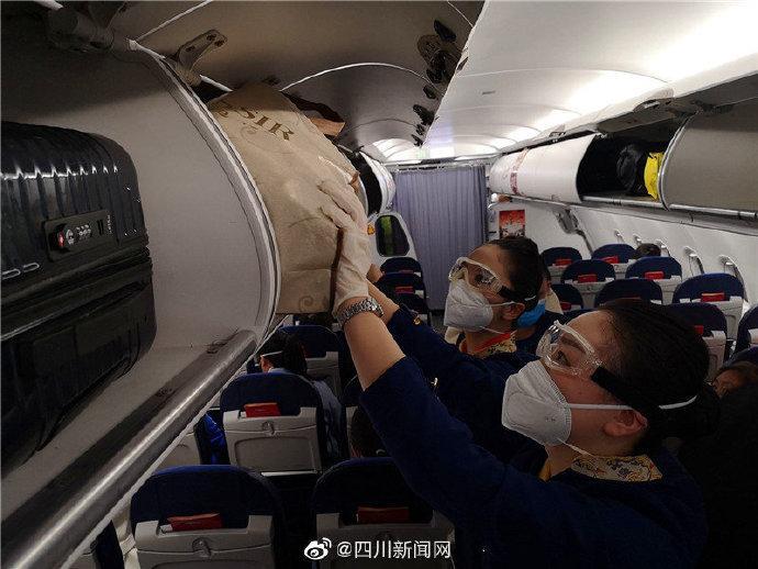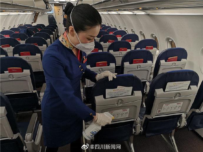【成都直飞武汉首个航班EU2293落地武汉】4月8日零时起,武汉市解除离汉离鄂通道管控措施。8日上午,成都航空EU2293航班搭载着75名旅客,于早上6:50从蓉起飞,8时24分抵达武汉,成为武汉解禁后成都飞往武汉的第一个航班。据了解,机上旅客以复工和滞留成都返程为主。记者了解到,为稳妥有序复航,成都航空提前进行飞机机舱整体严格的消毒、更换全新空气过滤装置等工作,全体机组人员出发前检测体温,执行航班期间乘务员全程佩戴口罩、手套。同时,停止配备餐食、毛毯、报刊杂志等,最大限度减少人员接触导致的疫情风险。每个航程结束之后还会为飞机客舱彻底消毒,包括扶手、行李架、小桌板等旅客经常接触的位置,有效阻断病毒和分泌物在客舱中传播。