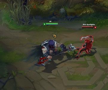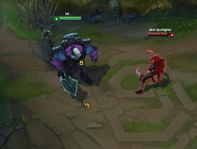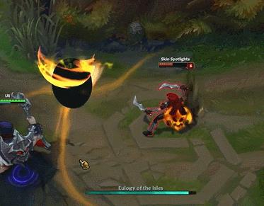 五杀贝斯手的皮肤是拥有不少特效的,Q技能和E标记都变成了火焰色,爪牙没变。