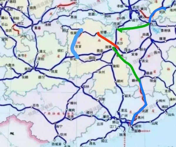 目前长沙市可以通过国家级主干线京沪高铁线路北上到达京津冀地区各城市,通过京广高铁南下到达珠三角地区各城市,也可以通过国家主干线沪昆高铁快速到达长三角各地区等城市或者西进到达贵州云南等西部地区,待到所有高铁线路建设完成后,届时长沙将拥有6个方向的高铁线路,从下图可以看出长沙市的大致高铁方向,注意想看详细的路线要看国家发布的,下图仅仅表示大致方向,不代表实际为位置。(红色是在建的高铁线路,绿色为规划的高高铁线路,红色的是在建的高铁线路)