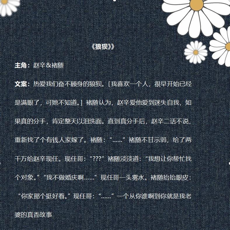 书评:非典型理工男&感情细腻小说家文科女的爱情。一段始于女主发错微信产生的缘分,一个我只和你谈恋爱,结婚、白头的故事。男女性格超棒,两个人之间的爱情也超级甜,强推!