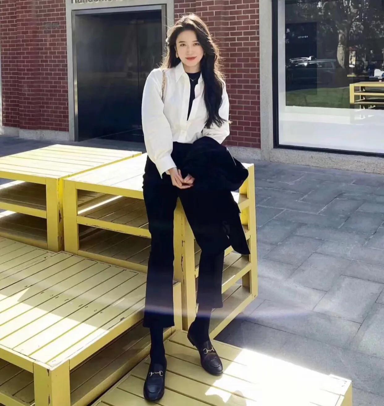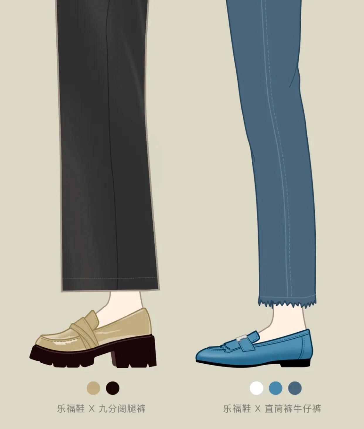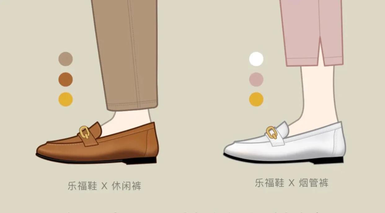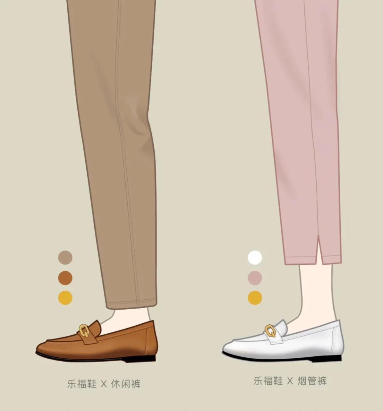 乐福鞋搭配休闲裤或者烟管裤都有一种很职业正式的感觉,九分的裤长露出脚踝显瘦无敌,配色也帮大家精心的挑选过啦!摩卡棕色系或者是奶油粉色系都很吸睛。