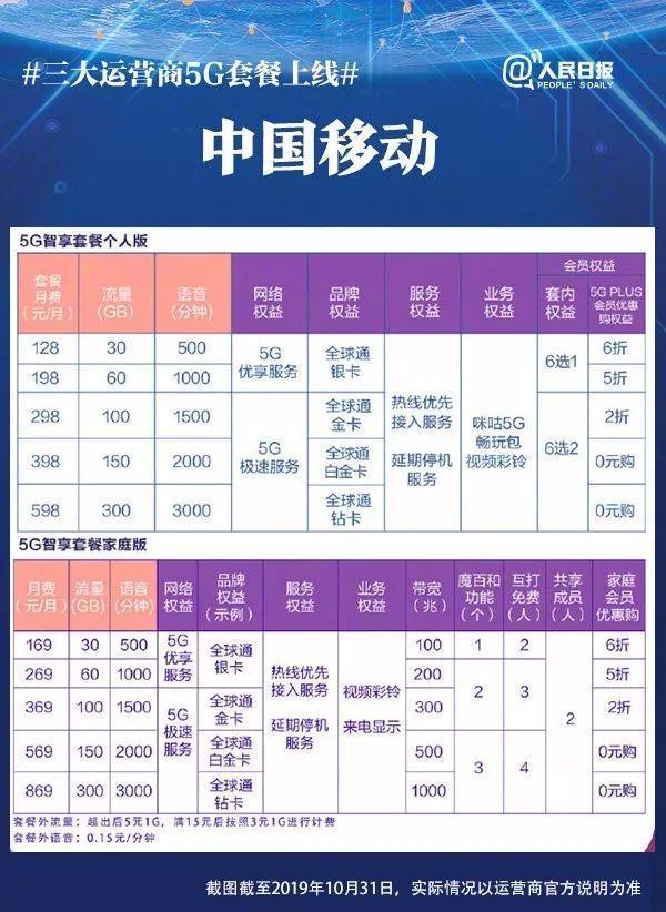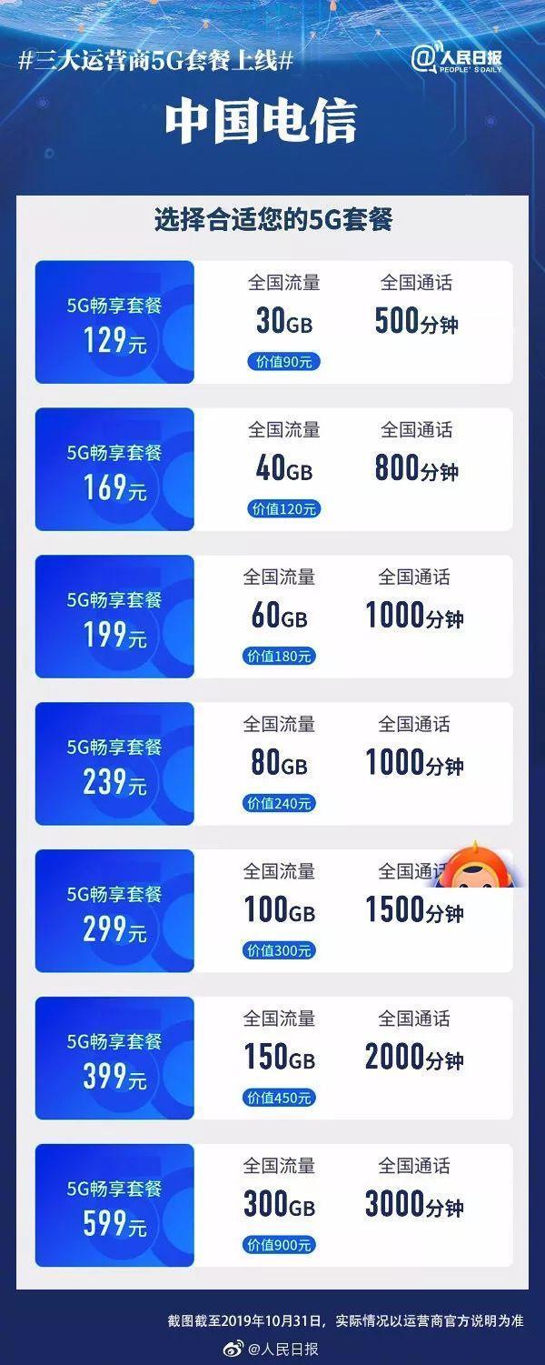 启动仪式上,中国移动、中国联通、中国电信正式公布5G套餐,并于11月1日正式上线5G商用套餐。
