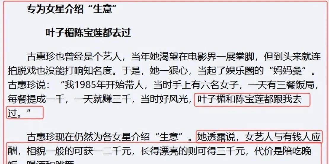 后来,古惠珍被抓,因教唆未成年卖淫被判刑两年。出狱后,她居然凭借“淫媒”的经历,在一些电影里演起了类似的角色,比如《快乐的小鸡》、《香港奇案》之类的。这真是让人感觉讽刺又无奈。