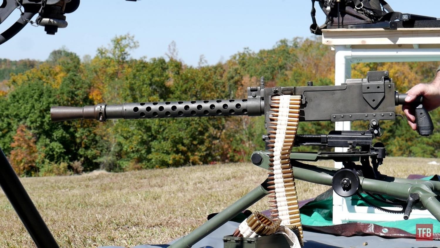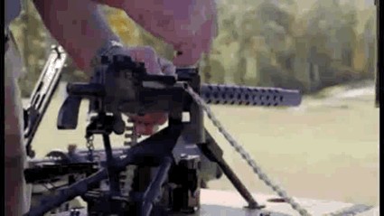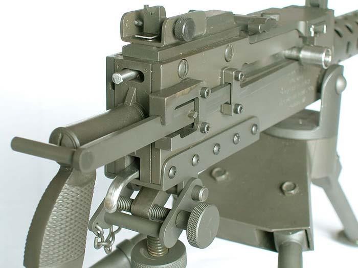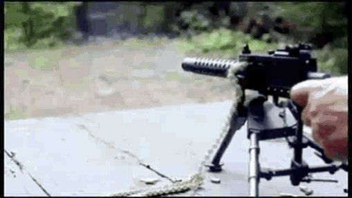 而更为好玩的一点是,多数的迷你M1919A4都是半自动射击,只有极少数是可以全自动射击的,枪管长度较短,也没有枪托(加了三脚架还用啥枪托),无法抵肩射击,于是乎,这机枪居然在美国的法律条文里面算是手枪。对,一个弹链供弹、架着三脚架的手枪。
