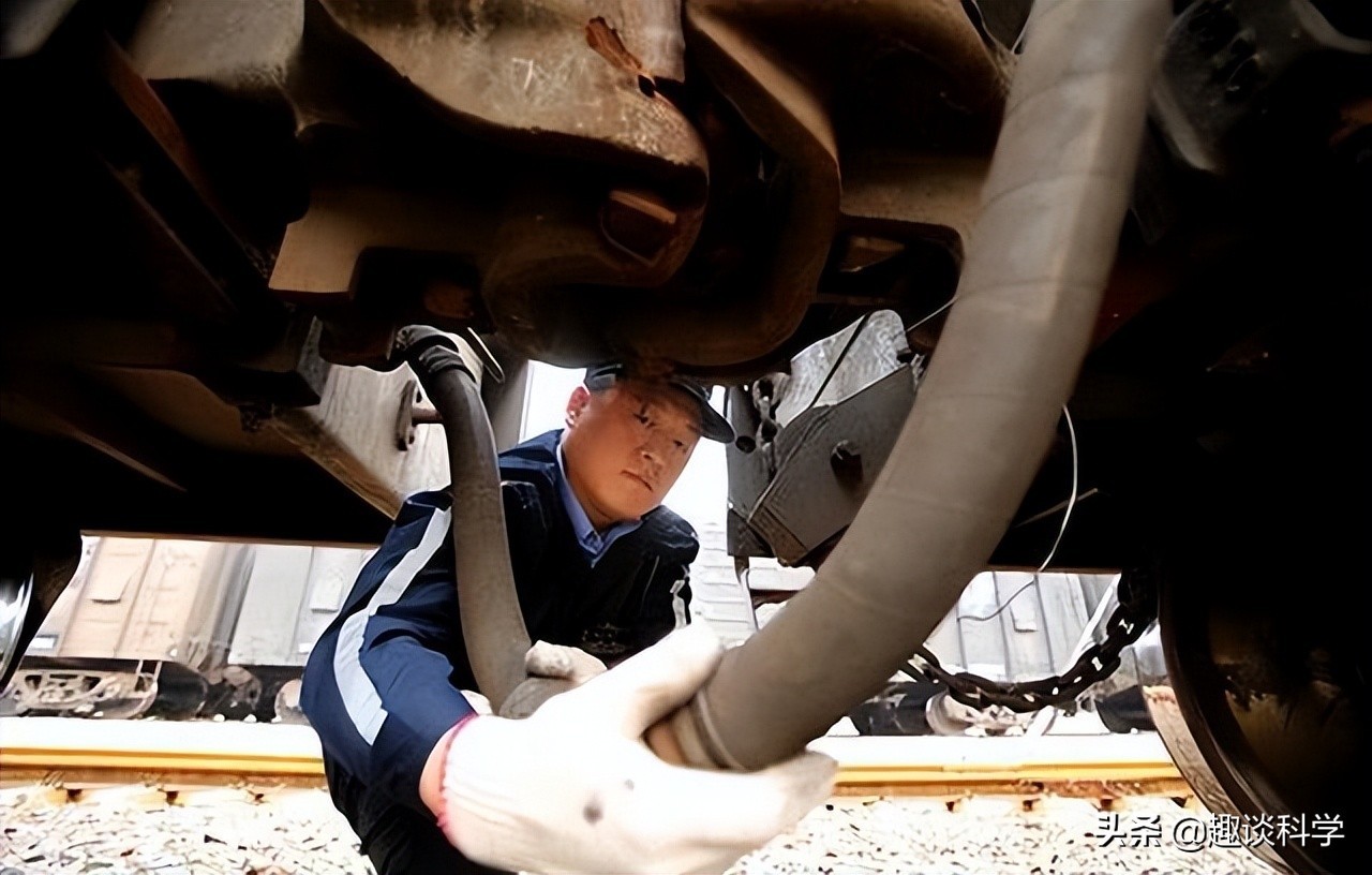 一列万吨编组的重车,能挂载百节车辆,长度可以达到1.7公里。想象一下,一列重车浩浩荡荡行驶起来,所具有的动能是何其强大。如果单纯靠车头来刹车,一时半会肯定是刹不下来的,而且前车有可能被后车巨大的惯性所挤扁。为此一列车整编完会用风管将每辆车的风缸连接起来,通过机车进行协调控制压缩空气,风缸可以提供制动力,类似于汽车中的气刹。