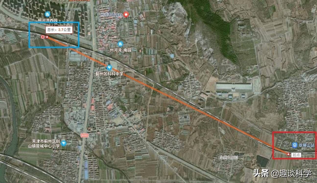 此次,出现溜逸的列车原本在翠屏山站停靠,下图红色位置。撞击发生在距离车站3.7公里处的铁路桥梁上,下图蓝色位置。换句话说,原本停靠在站点侧线上的列车溜逸后自然移动了约3.7公里。