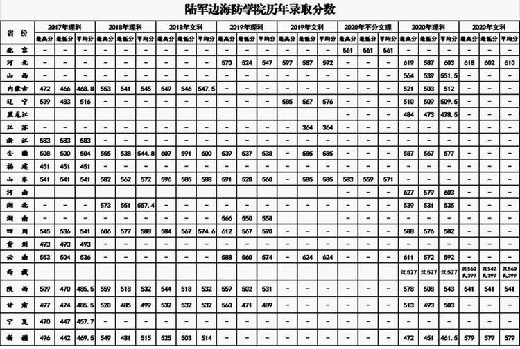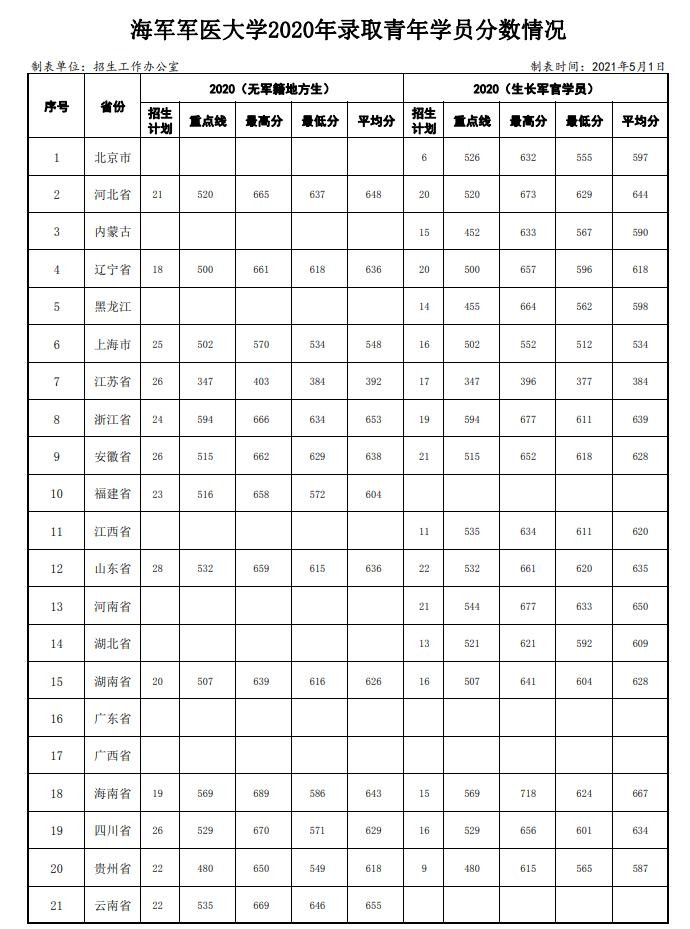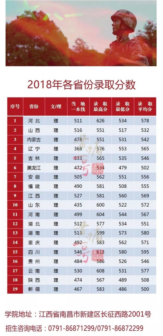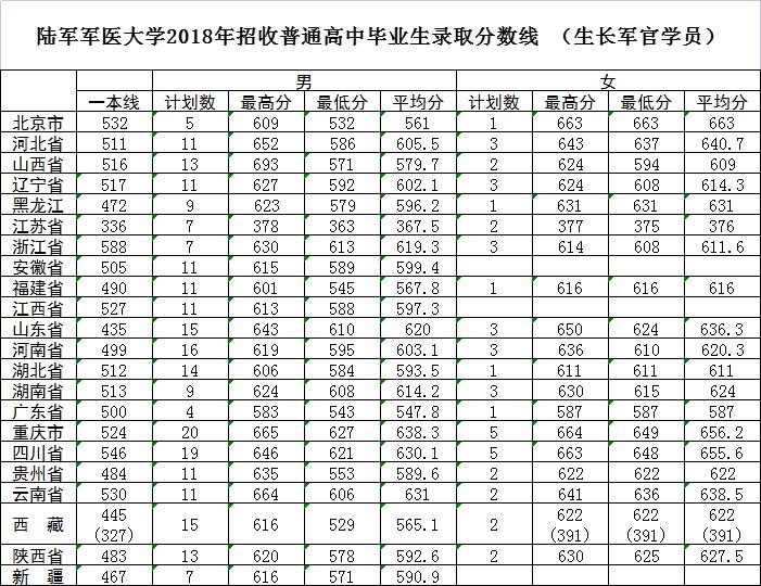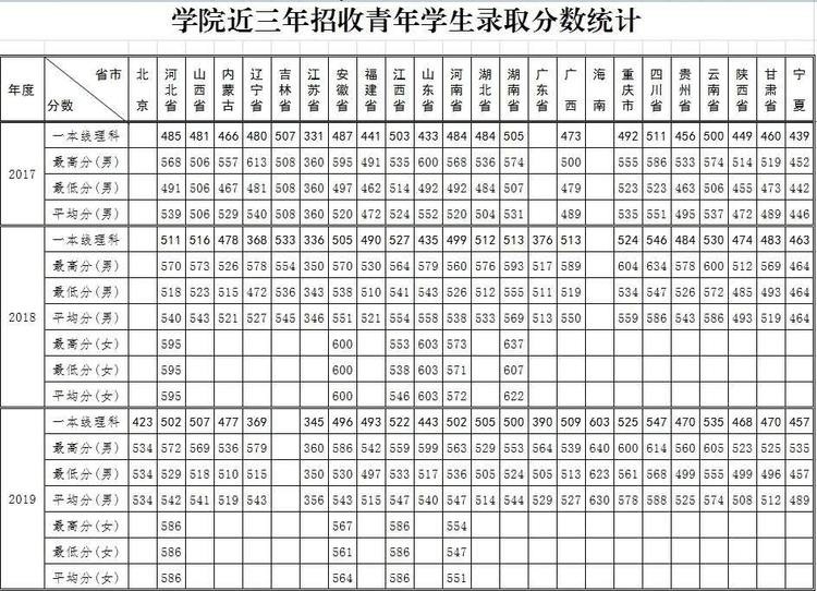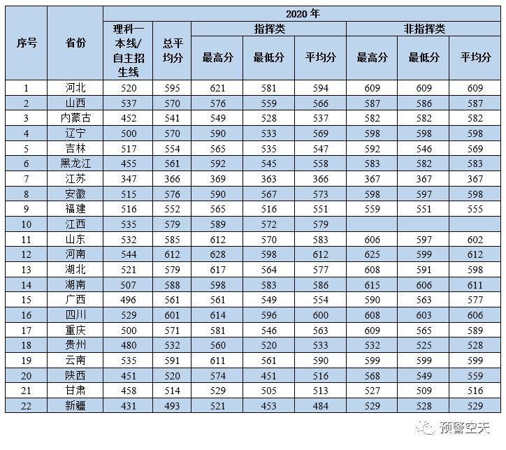 全国27所军校2020-2018年录取分数