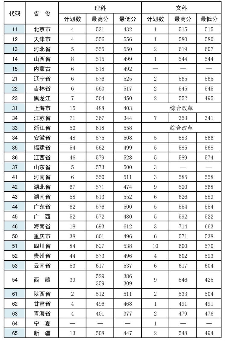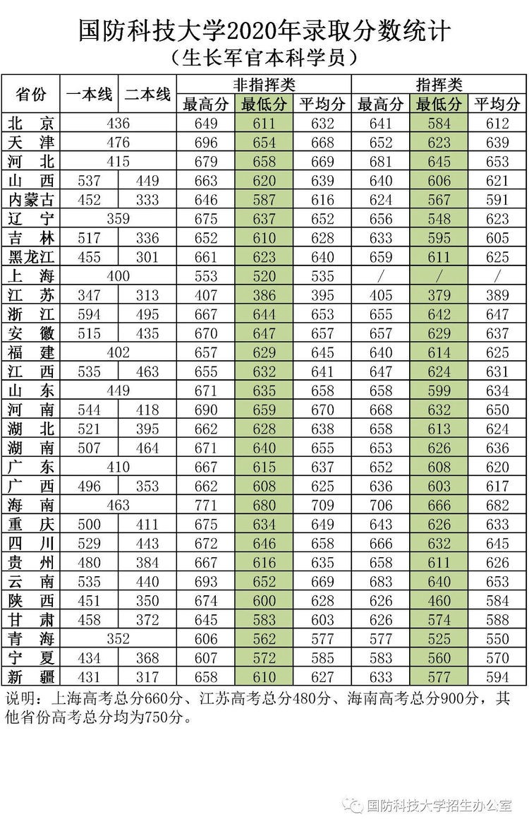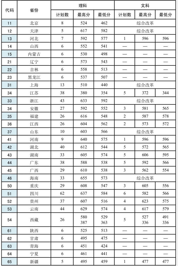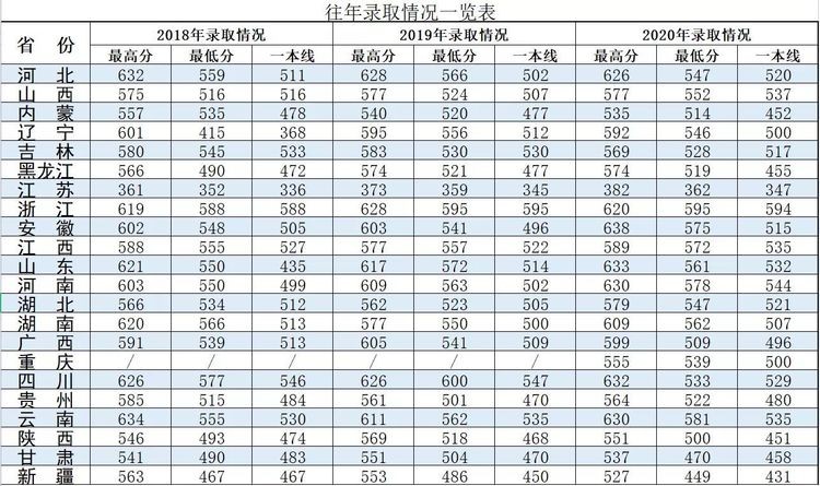 2020年各省份录取分数线