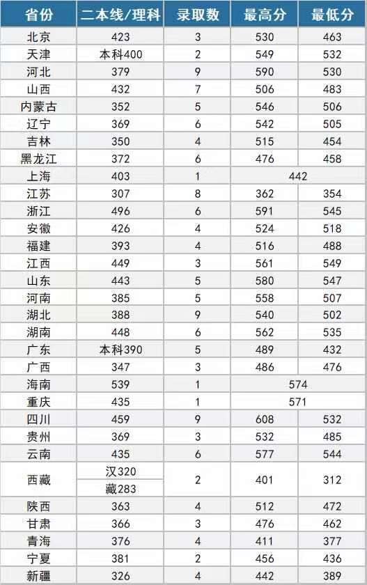 2019年录取分数线及招生人数