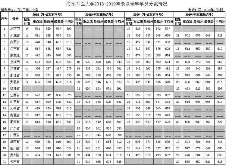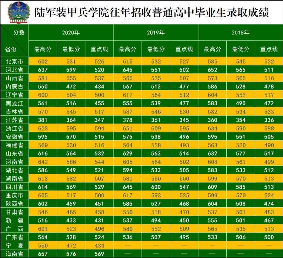 2021年军队共有27所院校面向全国普通高中毕业生招生,以下是米老师整理的2018——2020年军校录取数据。