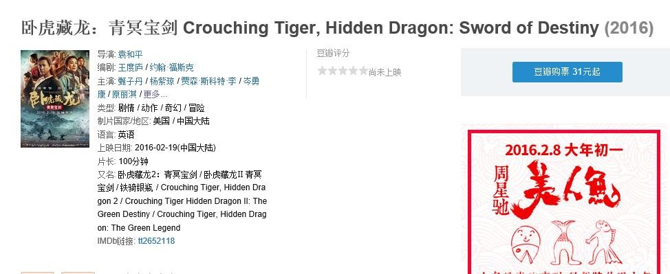一周观影指南 《火影忍者》《卧虎藏龙2》