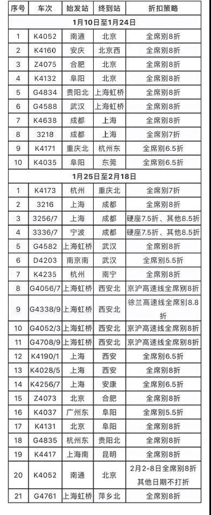 部分列车折扣低至5.5折