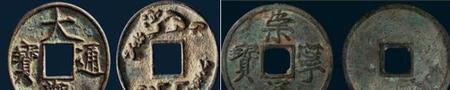 赵匡胤建立的宋代所发行的钱币可以说是存世量非常大,它的特点是:币的字体修理,观赏性强,尤其是宋徽宗时期发行的“大观通宝”与“崇宁通宝”,北方的辽与金所铸的钱币也是沿用了宋钱,宋王朝经济发达,但军事软弱,结果是被北方的蒙古所灭,元入主中原后所发行的方孔铜钱是币的正面采用了宋钱的风格,币的背面出现了八思巴文。也发行了纸质的“交钞”。朱元璋建立明朝后设立了宝源局与宝泉局,制作的钱币精美。