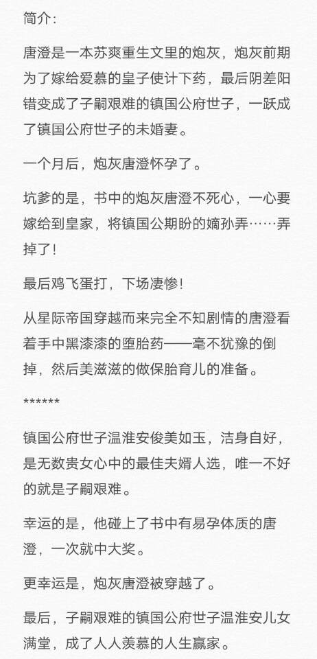 很喜欢这本书的作者,文笔很好,故事情节也很好看。这本书女追男,因为女主和男主养子有过婚约,女主嫁给男主,都以为她是在报复原书男主。本主男主没怎么接触过女性,所以女主一勾搭就心动了,本书男女主互动超甜。