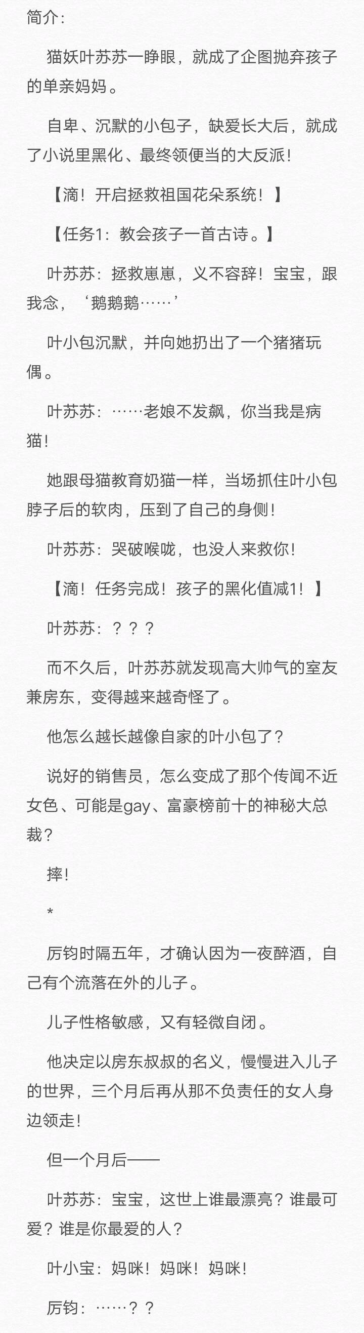 喜欢养包子文的小伙伴,一定不要错过这本小说,这本萌娃文超好看。男主本来是冲突孩子去的,没想到最后却喜欢上了孩子他妈......