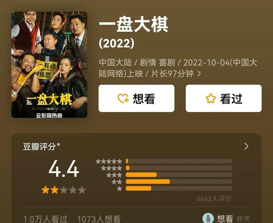 然而,在2022年,小沈阳参演了一部电视剧《请君》,在其中担任配角,并且首次出演了一部网络电影《一盘大棋》,他终于重新拿回了主演的位置。可惜的是,这部戏最终只得到了4.4分的评分。小沈阳的喜剧路似乎走到了十字路口。