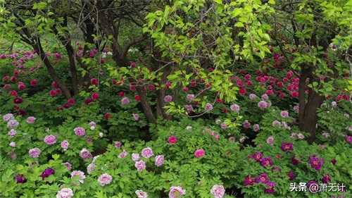 四.牡丹栽植形式设计精致,且栽种得极为密集,保证不裸露黄土破坏观赏性。对牡丹照看精心,适时浇水、热时遮阳、冷时保暖,简直如同照看幼儿。