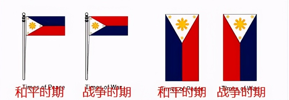 3、菲律宾国旗会根据战争而发生变化。和平时期,菲律宾国旗上方为蓝色,下方则为红色。而如果发生战争,两个颜色就会发生调换,寓意着“菲律宾进入战争状态,需要民众拿出勇气对抗敌人”。