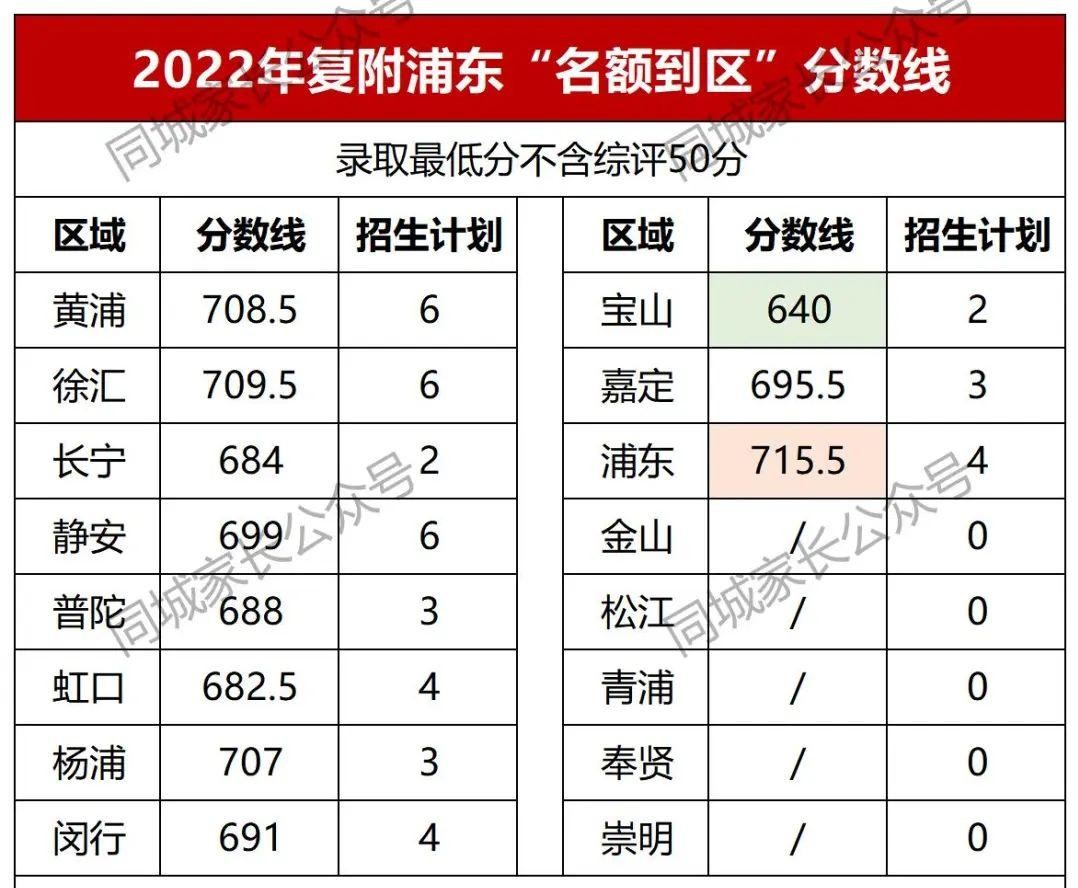 2、复附浦东“名额到区”分数线