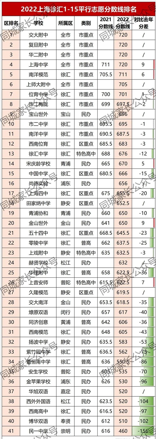 2022年,徐汇2所市重点分数线上涨,3所重点高中分数线下降,10所区重点+普高分数线全部下降!