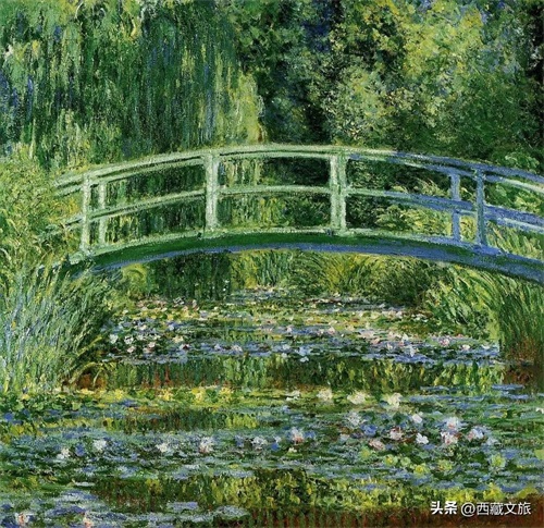 在吉维尼的私人庭院中,莫奈亲手挖掘了人工池塘,设计了一座日本式小桥,并种下了满池的睡莲。