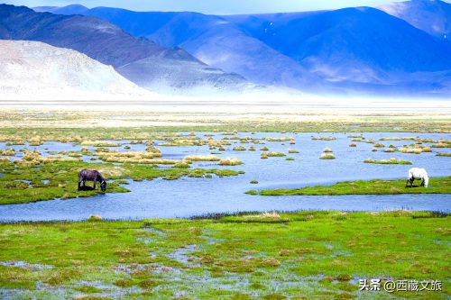 这里地势东高西低,海拔高达4500米,由于湖水浸淫,四周形成了大片丰美的草场。