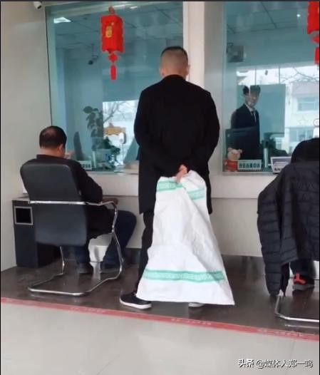与此同时,在线君还看到另外一幅场景,一位存钱的乡亲,使用蛇皮袋子提着现金前往银行存款,这样的举止打扮,这样的言行,足以震惊无数普通市民百姓。恰如万用工具之一的蛇皮袋子,装载着无所不能的金钱,比其它的包装也许更加安全更加便捷更加令人感到神奇,如果你看到这样的一幕,也一定会感觉到不可思议?