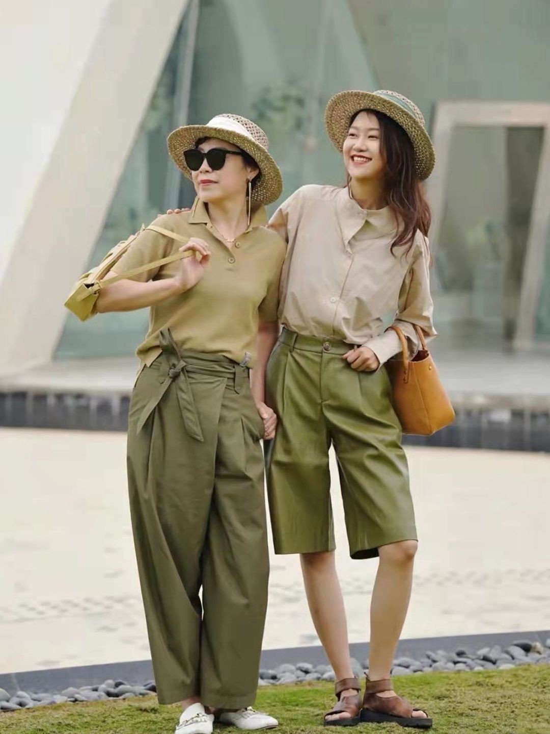 以长款醋酸衬衫为例,叠穿T恤、下搭阔腿裤,再佩戴丝巾、帽子点缀造型,整体look简约又高级,非常适合上了年纪的女人。