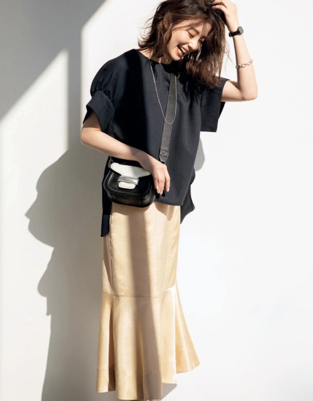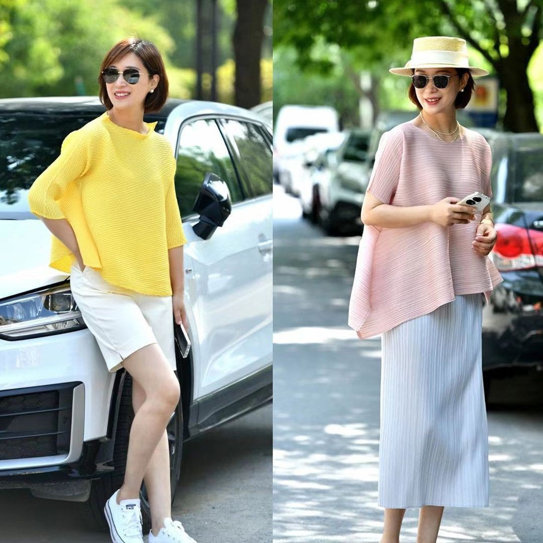 另外,醋酸衫由于面料的特殊性,穿起来清凉又舒适,可以与裙子组合打造叠穿效果,提升造型层次感也能起到一定的防晒作用!