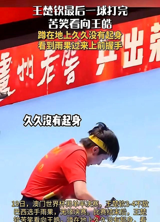 王楚钦止步四强哭了,他像做错事的小孩,回头看向了王皓。