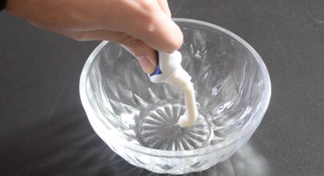 准备一个容器,接着我们挤入一些牙膏,不管是啥牌子的牙膏都可以,牙膏含有研磨剂,这种成分可以有效清洁玻璃污渍。然后我们再倒入一些白醋,白醋不但能够将玻璃上顽固的污渍给软化,并且还可以消毒杀菌。我们再加入一些白酒,白酒含有酒精,能够使玻璃上的水分快速蒸发。最后,我们准备一个钢丝球以及一只不要了的旧袜子,把钢丝球套入袜子中就制作成了一个清洁神奇。我们只需用这个神奇蘸取少许制作好的清洁液,擦拭玻璃就可以了,这样不仅不容易刮花玻璃,并且还可以快速清理掉玻璃上的顽固污渍。