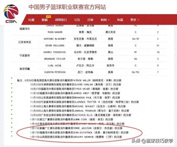CBA官方最近更新了外籍球员的注册信息,新疆、福建和山西队都取消了队内一名外援的注册。
