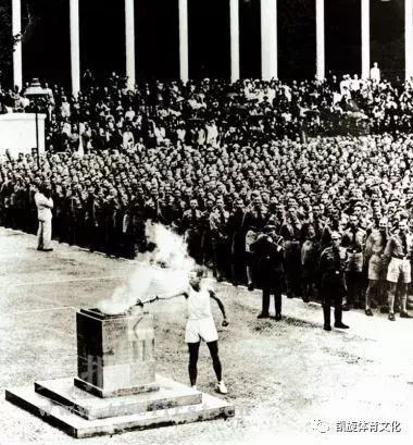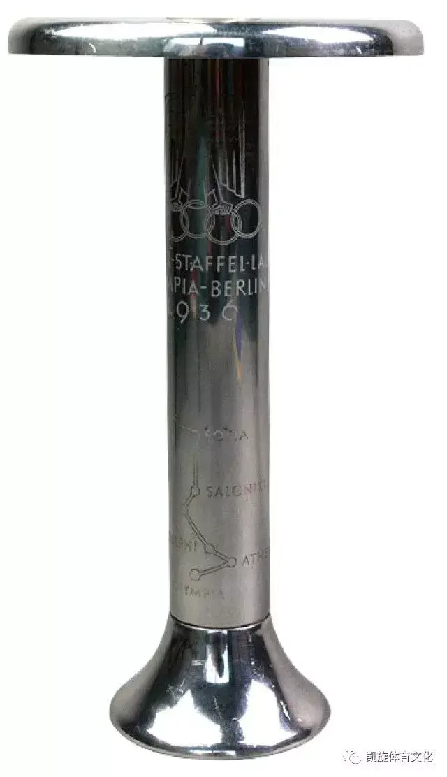 1936年,卡尔·迪姆教授根据古希腊瓷器上的绘画设计,由德国人弗里德里希·克虏伯·许特韦克为柏林奥运会制作了第一把火炬。火炬由镁为主的燃料供燃,重460克,长27厘米。