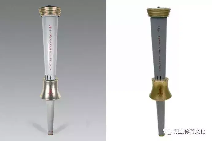 1980年,莫斯科奥运会的火炬上写有“莫斯科奥运会1980”字样。在下边托架上有本届奥运会的会徽。