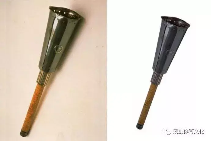 1952年,赫尔辛基奥运会的火炬长57厘米、重1.08公斤,用合金材料制成,还有一个桦木制成的手柄。
