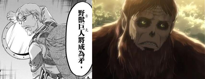 对于已揭露的巨人来看:进击的巨人、始祖巨人、女巨人、超大型巨人、铠之巨人、兽之巨人、长臂巨人、巨颚巨人、车夫巨人(四足茶几巨)九大巨人全部上线?但四足茶几巨的争议却依旧存在。