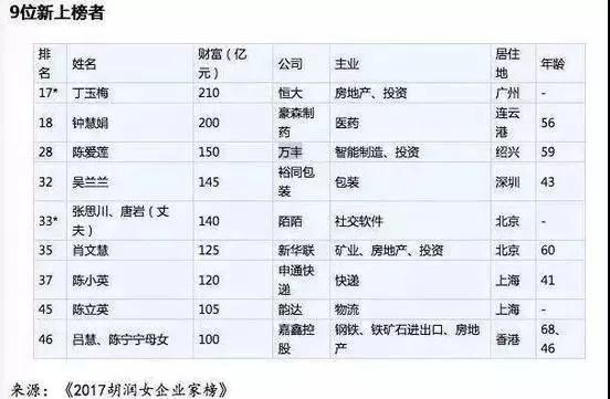 跻身胡润女富豪榜17名