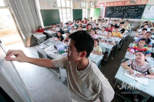 2021年9月10日,在湖南省邵阳市隆回县三阁司镇中学,陈小宝在上课。曾勇 罗仁洲 摄影报道