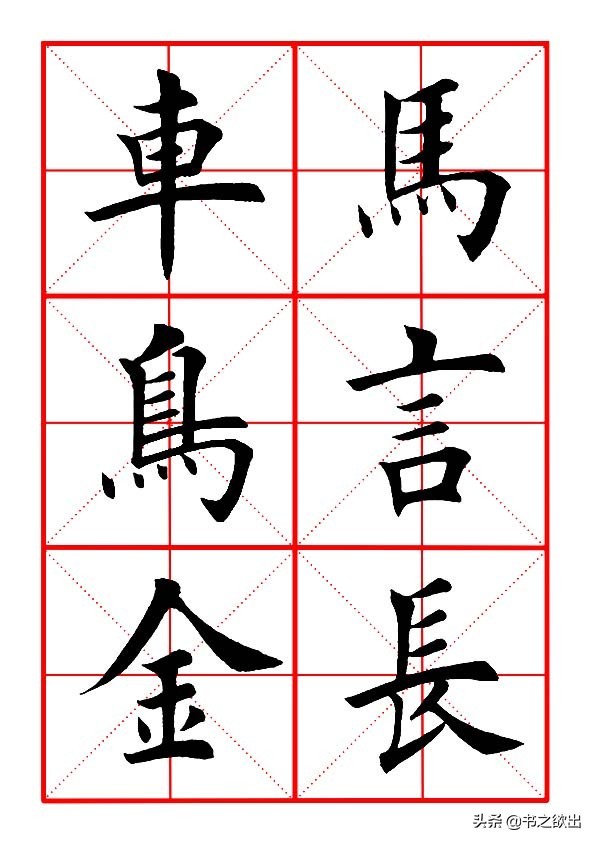 首笔竖画起笔稍重,角度稍平,向下略轻,稍左斜;右边三个横画与左竖虚接,抗肩,不要写重,首横略长于下面两横,平行等距;下横起笔左探,左边抗肩角度稍大,压竖笔的收笔而过,与上面横画间距相等,收笔稍下压,略呈拱形;竖提起笔位置位于竖画偏左处,与横画虚接,稍带弧度,稍左斜,行笔到位后笔锋稍往左带然后向下顿笔再向右上方提笔写提,注意提笔的指向,且出锋不要超过上面首横;小撇位于第三横收笔下方起笔,虚接横画,撇身稍直,不要写长;捺笔舒展,从小撇里面起笔,顺势向右下行,渐重,至捺角处稍顿然后向右缓提笔锋收笔,出锋略平。