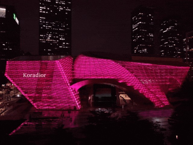 深圳市当代艺术与城市规划馆在当天化身玫红色彩流动空间,灵动色彩,明快色调,结合绚丽绽放的7朵巨型玫瑰艺术装置,现场浪漫氛围拉满。