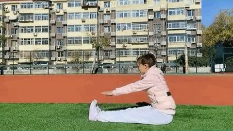 2.向前伸展时,先重复向后躺的动作,让自己有个缓冲,使肌肉可以快速得到拉伸,然后迅速向前伸展,你会发现又多伸出5cm;