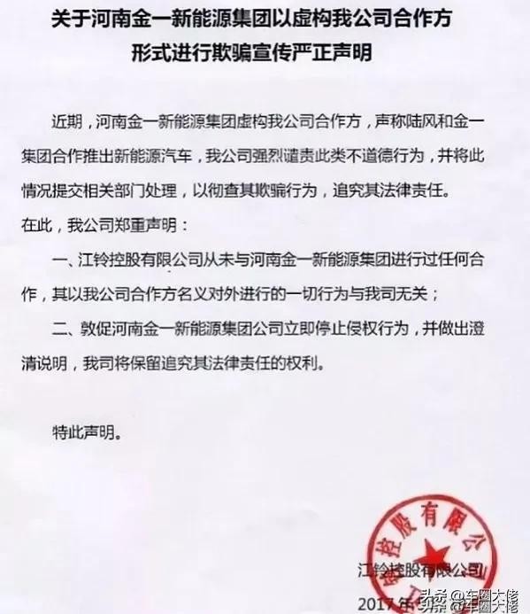其实新港岛新能源已经不是第一次干这种非法勾当了,该公司的前身是“金一集团”,当年金一集团跑到韩国去成立分支机构,然后各种吹嘘称自己公司实力强劲。他们先是将“陆风X7”吹成是自己研发的新能源汽车,接着又西装笔挺地跑到野马汽车工厂门口摆拍,号称金一集团将野马汽车收购了,并表示金一集团会在两年内在中国股市上市。