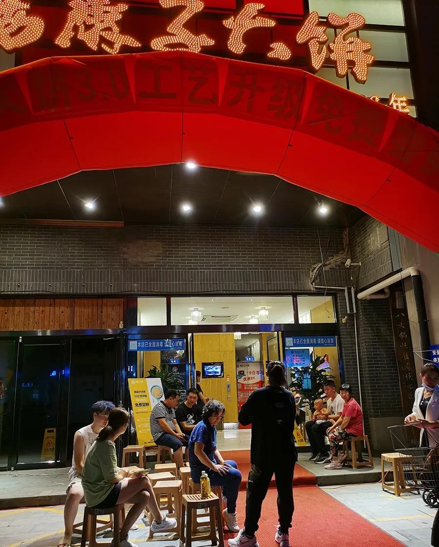 活动当天晚上8点等餐排队的食客