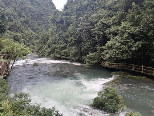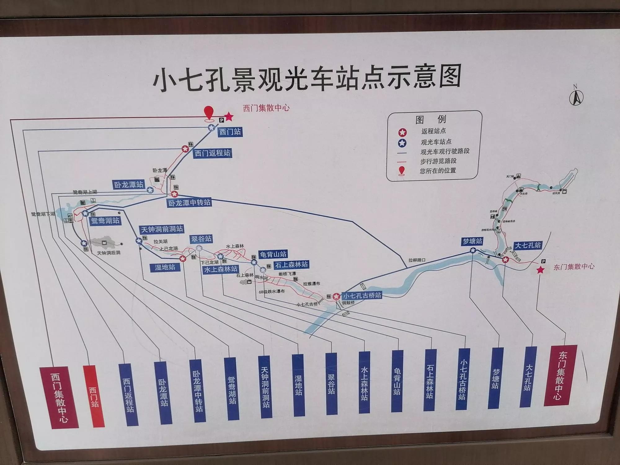 小七孔景区一共有2个门,东门和西门都可以进出,东门进只能一路上行,大七孔也在东门,但西门进就是一路下行,我们就是在西门进来的,这样把小七孔最精华部分留到了最后。