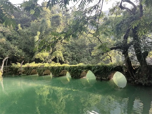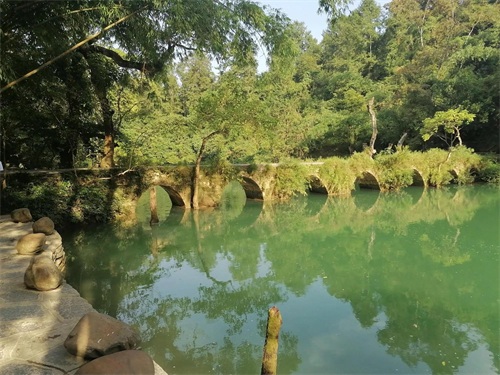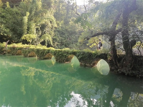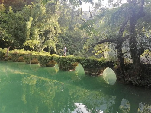 行走于桥上,跟随布依族人的脚印,体验见证这青青碧水的百年七孔桥。