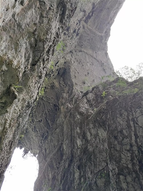 在桥下仰观天生桥,很清晰的天然大石桥。