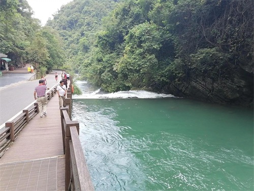 下船后顺着栈道继续前进,还要徒步1.5公里才能到达天生桥。