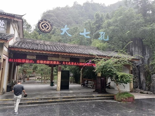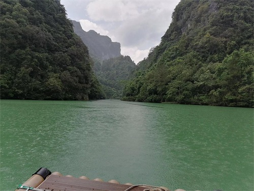 刚进景区就开始下雨,游大七孔本打算步行进入返回坐船,但下雨后打乱了计划决定先坐船进入。