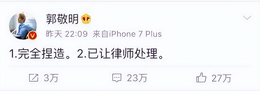 尽管,郭敬明立马发了声明说全是造谣,但是“无风不起浪”,你空口无凭的说造谣有几个信的啊。